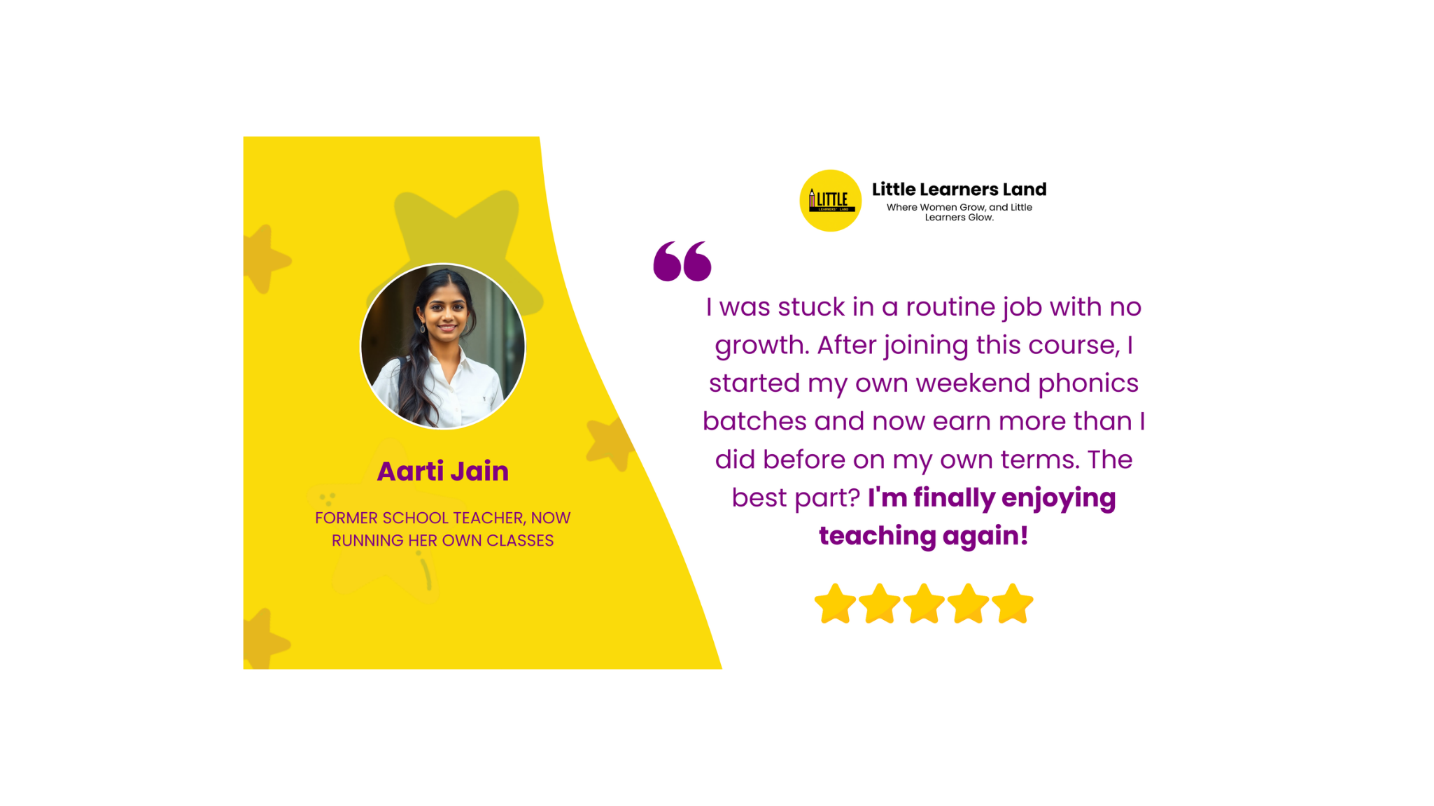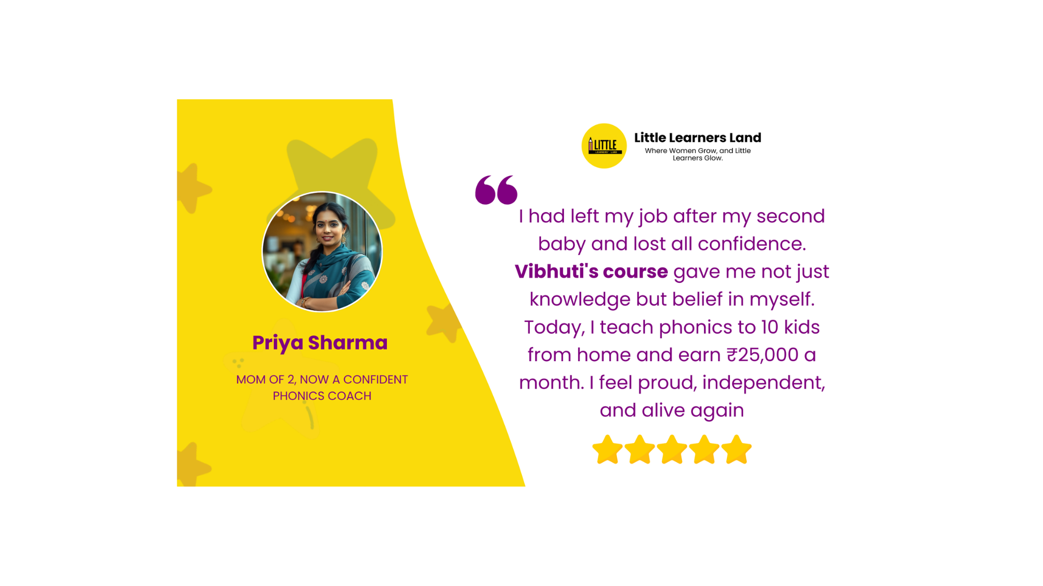 As a mother, I’ve felt the pull between dreams and duties — and I know how overwhelming it can be. That’s why I founded Little Learners’ Land — not just to teach phonics, but to uplift women like you. Women with passion, purpose, and potential.